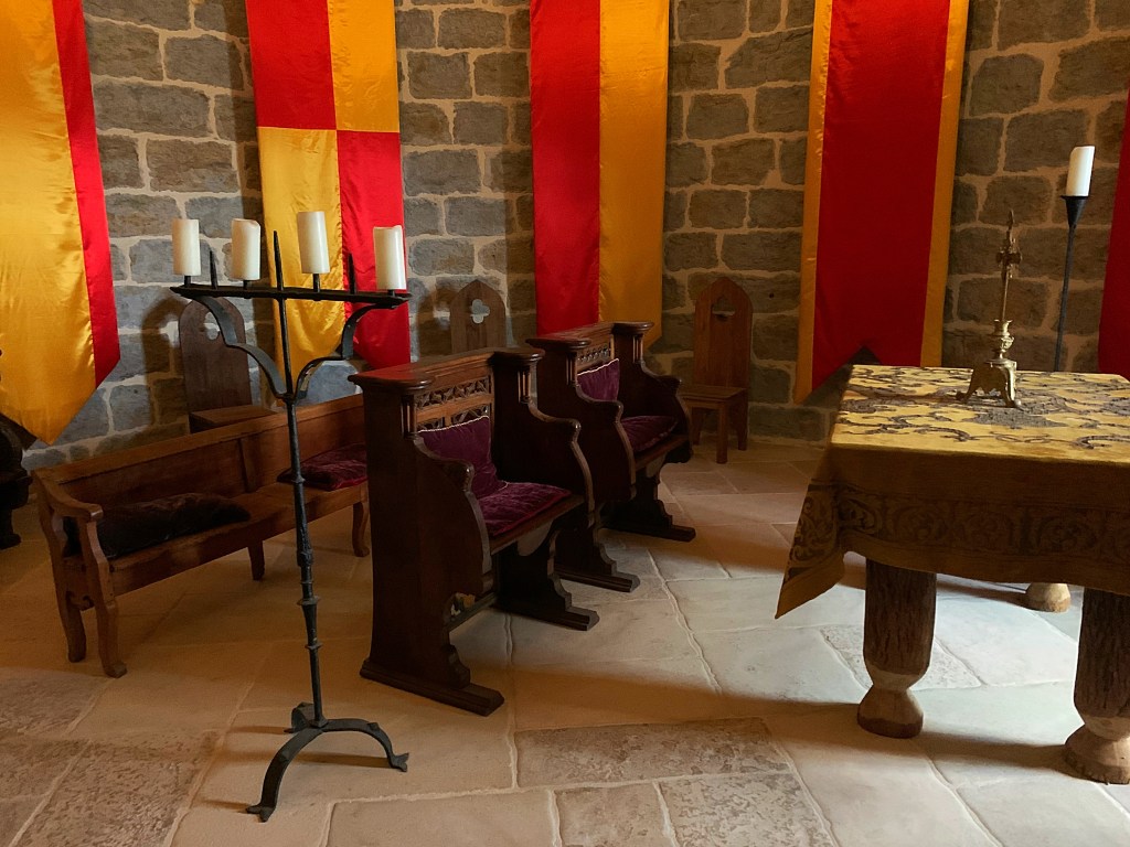 Plongez dans la vie quotidienne du Moyen-Âge tardif (XIII e – XV e) et du début de la Renaissance (XV e – XVI e) lors d’une visite des différentes pièces du logis seigneurial ; de la salle du banquet jusqu’à la salle des gardes et au vertigineux mâchicoulis.