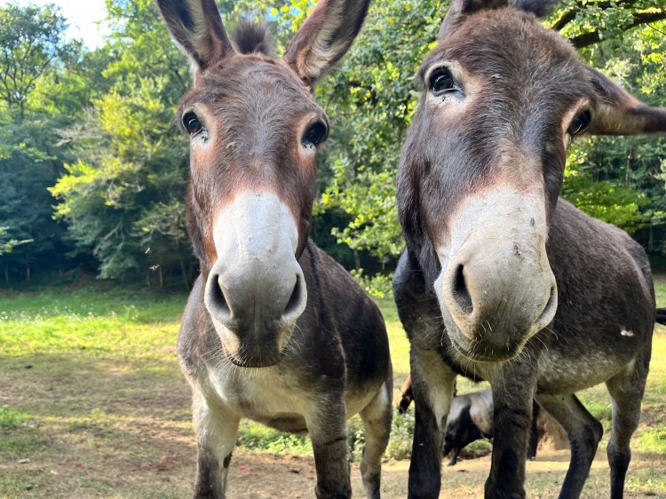 Depuis 2021, trois nouveaux pensionnaires ont trouvé refuge dans les prairies du Château ; une famille d’ânes du Bourbonnais !